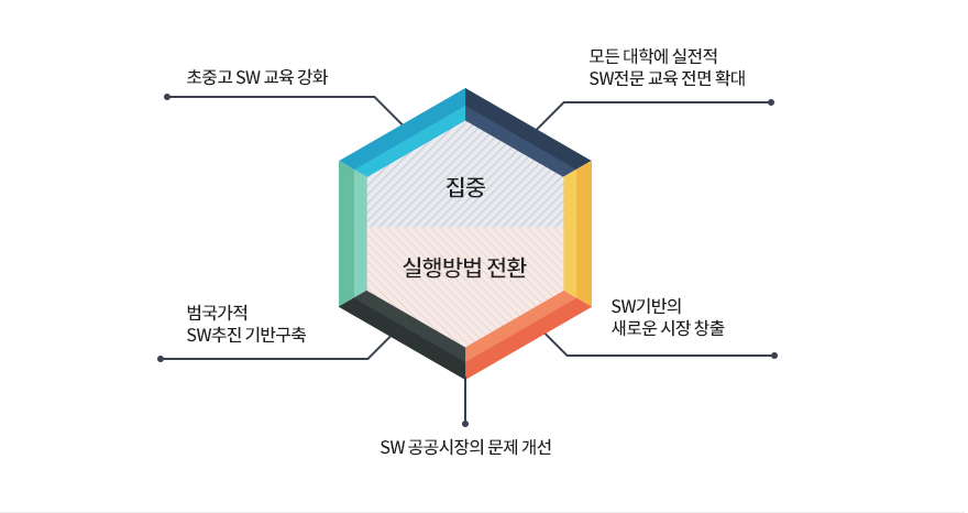 SW 중심사회는 SW가 광범위하고 적극적으로 사용 및 활용되어 삶의 질이 향상되고 SW가 개인, 기업 및 국가의 경쟁력이 되는 세상을 말합니다. 그렇다면 이와 같은 SW 중심사회를 실현하기 위해서는 어떠한 과제들을 시행하여야 할까?